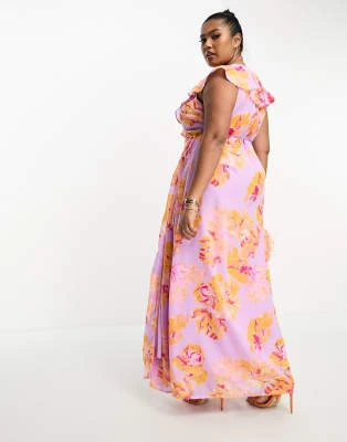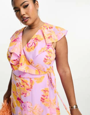 Hope & Ivy Plus – Vestito Midi Giallo E Verde A Fiori Con Laccio Avvolgente