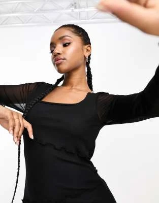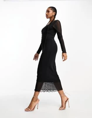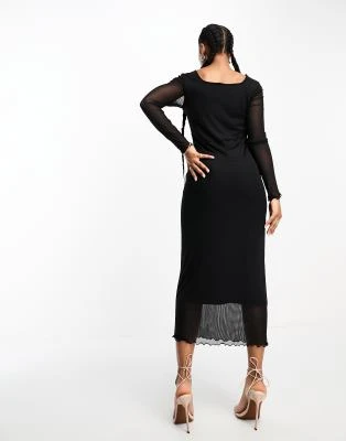 ASOS DESIGN – Vestito Milkmaid Midi Nero E Rosso A Fiori Con Dettagli Arricciati E Maniche Svasate