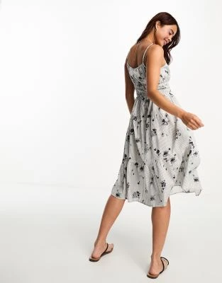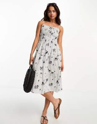 ASOS DESIGN – Vestito Milkmaid Midi Nero E Rosso A Fiori Con Dettagli Arricciati E Maniche Svasate