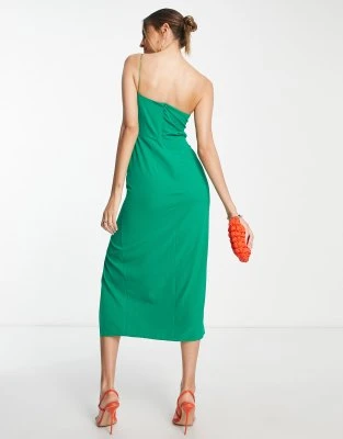 ASOS DESIGN Tall – Vestito Midi Accollato Marrone Cioccolato A Portafoglio Arricciato
