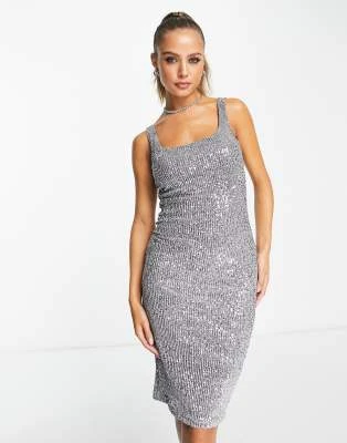 ASOS Maternity ASOS DESIGN Maternity – Vestito Midi Lilla Con Scollo Ad Anello E Maniche Con Volant