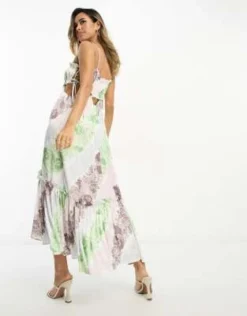 ASOS DESIGN – Vestito Midi Con Stampa Astratta A Fiori E Bustino Stile Corsetto Con Taglio Sbieco