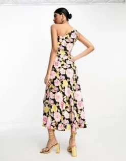 ASOS DESIGN – Vestito Midi Longuette Con Inserti In Rete Glitterata Con Perle Color Cammello