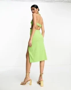 ASOS DESIGN – Vestito Midi Stropicciato A Portafoglio Blu Testurizzato Con Allacciatura Laterale
