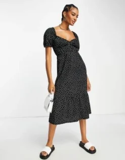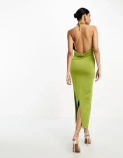 ASOS DESIGN – Vestito Midi Verde Salvia Con Bustino Intrecciato, Cut-out E Maniche Ad Aletta