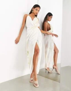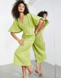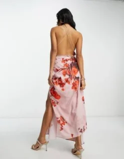 ASOS Edition – Vestito Midi Blu Con Ricamo Con Perline, Cut-out Sul Retro E Maniche A Sbuffo