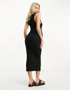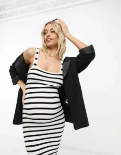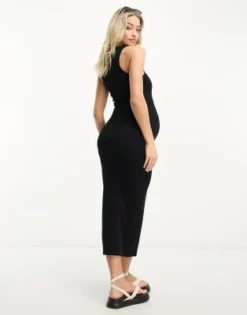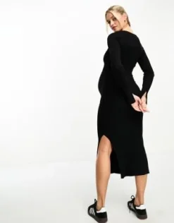 ASOS Maternity ASOS DESIGN Maternity – Vestito Midi Lavorato A Maglia Con Scollo A V A Coste Nero