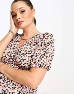 ASOS Maternity ASOS DESIGN Maternity – Vestito Midi Lilla Con Scollo Ad Anello E Maniche Con Volant