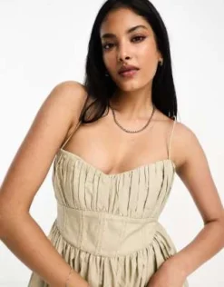 ASOS DESIGN – Vestito Midi Rosa A Pieghe Incrociato Sul Davanti Con Spalline Sottili E Cintura