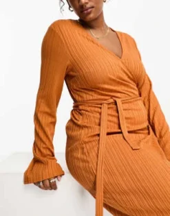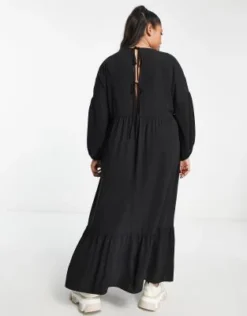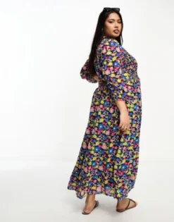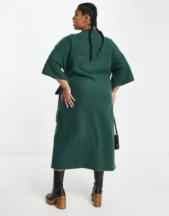 ASOS DESIGN Curve – Vestito Midi A Portafoglio Blu Raccolto In Vita Con Maniche A Campana E Colletto