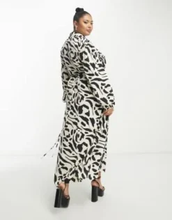 ASOS DESIGN Curve – Vestito Midi A Portafoglio Con Colletto Con Stampa Astratta Monocromatica