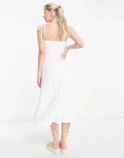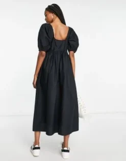 ASOS DESIGN Tall – Vestito Midi A Pieghe In Plumetis Rosso Con Maniche A Sbuffo E Bordi Smerlati