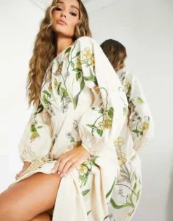 ASOS EDITION – Vestito Midi In Pizzo Sangallo A Fiori Con Maniche A Sbuffo E Incrociato Sul Davanti