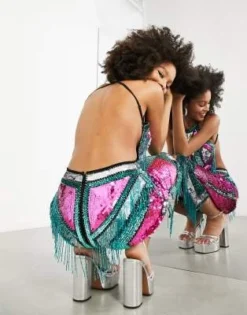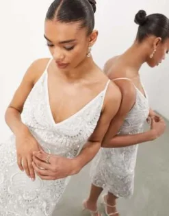 ASOS Edition – Vestito Midi Blu Con Ricamo Con Perline, Cut-out Sul Retro E Maniche A Sbuffo