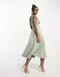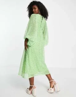 Miss Selfridge – Vestito Midi Da Festival In Pizzo Verde Lime Trasparente Con Spalline Sottili