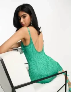 ASOS DESIGN – Vestito Lungo Con Spalline Sottili E Cuciture A Vista Verde Menta Scuro Con Paillettes