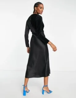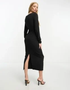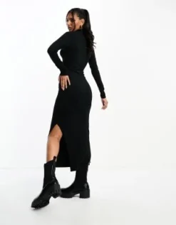 ASOS DESIGN – Vestito Midi Nero A Coste Con Cut-out, Spacco Laterale E Dettaglio Stile Collarino