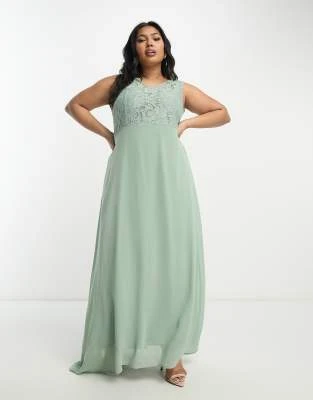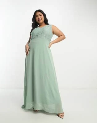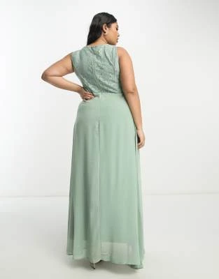 ASOS EDITION Curve – Vestito Lungo Allacciato Al Collo Con Arricciature In Raso Verde Salvia