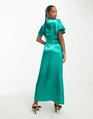 Nobody’s Child Petite – Esme – Vestito Midi Con Dettaglio Laccetti Sulle Maniche Verde A Fiorellini