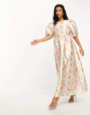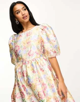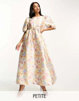 Nobody’s Child Petite – Esme – Vestito Midi Con Dettaglio Laccetti Sulle Maniche Verde A Fiorellini