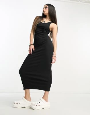 ASOS DESIGN – Vestito Milkmaid Midi Nero E Rosso A Fiori Con Dettagli Arricciati E Maniche Svasate