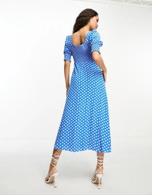 ASOS DESIGN – Vestito Milkmaid Midi Nero E Rosso A Fiori Con Dettagli Arricciati E Maniche Svasate