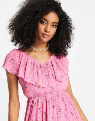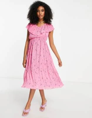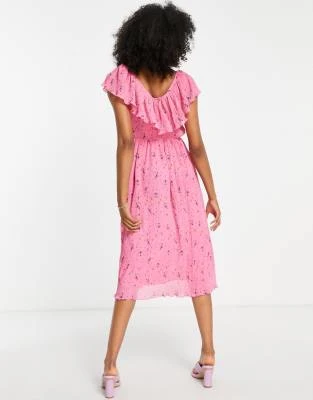 ASOS DESIGN – Vestito Da Giorno Midi Arricciato Con Maniche Ad Aletta Bianco Con Stampa Con Ciliegie